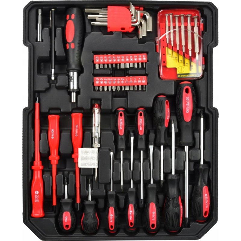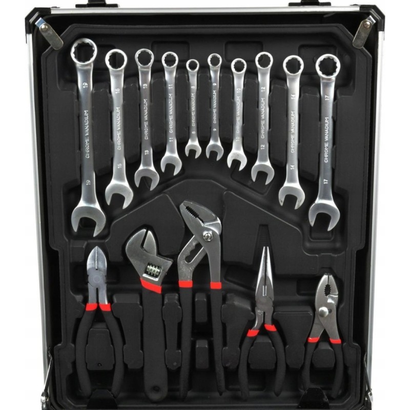 Zestaw zawiera szeroki wachlarz narzędzi, w tym szczypce, klucze, wkrętaki oraz wiele innych akcesoriów. Dzięki temu, masz wszystko, co potrzebne do realizacji różnorodnych zadań. Niezależnie od tego, czy potrzebujesz narzędzi do drobnych napraw, czy większych projektów, ten zestaw z pewnością spełni Twoje oczekiwania.