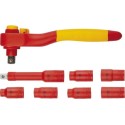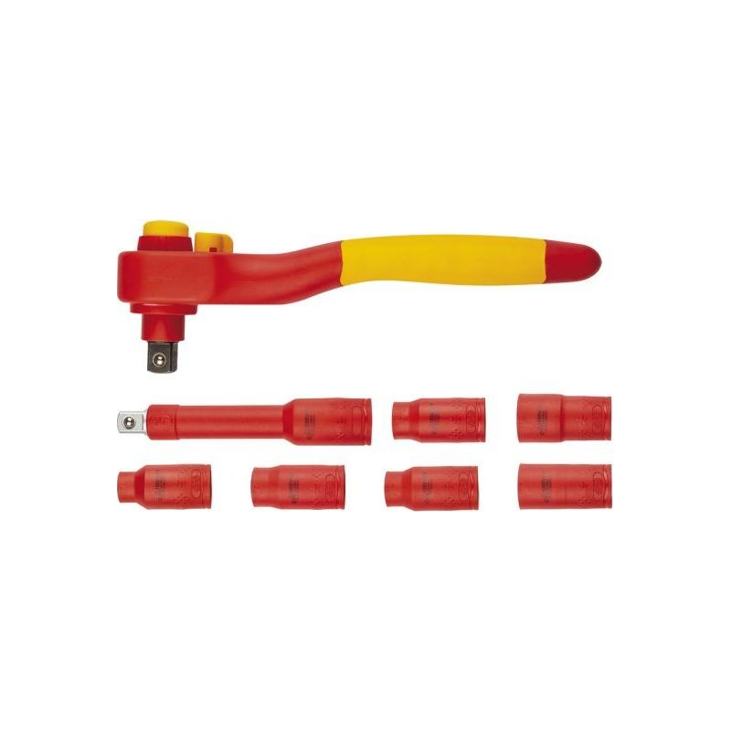 Zestaw kluczy nasadowych 1/2" NEO (nr ref. 01-307) składa się z 8 elementów, wykonanych z wysokiej jakości stali chromowo-wanadowej. W skład zestawu wchodzi odgięta grzechotka, wyposażona w trwały mechanizm zapadkowy (36 zęby) i ergonomiczny uchwyt. Zestaw zawiera pakiet nasadek sześciokątnych (w rozmiarach od 10 do 19 mm). Uzupełnieniem zestawu jest przedłużka 125 mm. Całość jest dostarczona w praktycznej i solidnej walizce wykonanej z tworzywa.