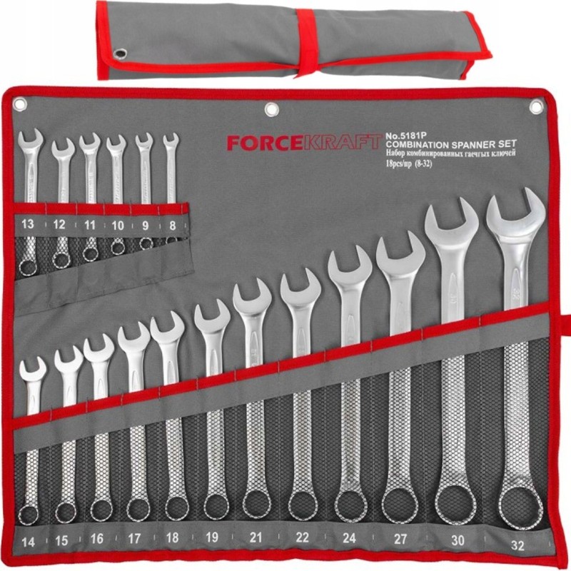 Zestaw narzędzi Forcekraft Zestaw kluczy płasko-oczkowych 18el. (8-32mm) na płótnie