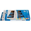 W zestawie zastosowano nowoczesne trójjkomponentowe rączki, które zwiększają komfort użytkowania. Dzięki unikalnej kombinacji miękkich i twardszych materiałów, rączki są wygodne w użyciu, co umożliwia precyzyjne oraz efektywne wkręcanie śrub.