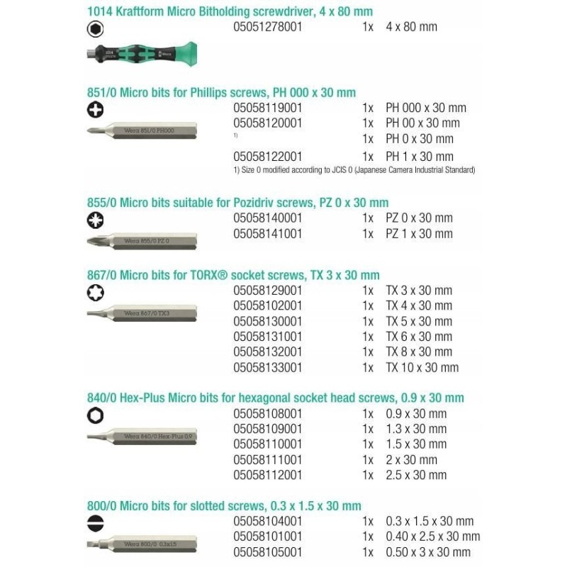 Specyfikacja techniczna Wera Tool-Check Modular Micro 1 – 21 elementów