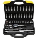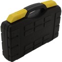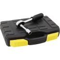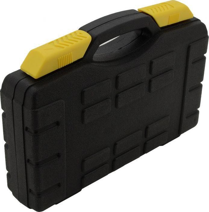 Zestaw Gola 1/4" wykonany ze stali CrV, grzechotka wyposażona w mechanizm 45-zębowy. Zestaw zawiera również szereg bitów, adapterów i przedłużek 1/4", rozmieszczonych w przejrzystych pozycjach w małej przenośnej walizce o wymiarach 24 x 16,5 x 5,5 cm. Zestaw nadaje się do użytku w domu, w garażu oraz w podróży. Dane techniczne: 1x grzechotka 1/4": (150 mm) 1x śrubokręt na bit 1/4": (150 mm) 1x belka teowa 1/4": (110 mm) 13x 1/4" przedłużka: 4; 4.5; 5; 5.5; 6; 7; 8; 9; 10; 11; 12; 13; 14 3x bit płaski 1/4" przedłużacz: 4; 5,5; 7 3x bit krzyżowy PH 1/4": PH1; PH2; PH3 3x końcówka krzyżakowa PZ 1/4": PZ1;PZ2;PZ3 6x bit Torx bit 1/4": T10; T15; T20; T25; T30; T40 6x bit bit 1/4": 3; 4; 5; 6; 7; 8 3x klucz imbusowy 1,5; 2; 2,5 2x przedłużenie 1/4": (50 mm); (100 mm) 1x przedłużenie przegubowe 1/4": (40 mm) 1x przedłużka elastyczna 1/4": (140mm) 1x adapter 1/4": (25 mm) Zawartość opakowania: 1 x gola zestaw