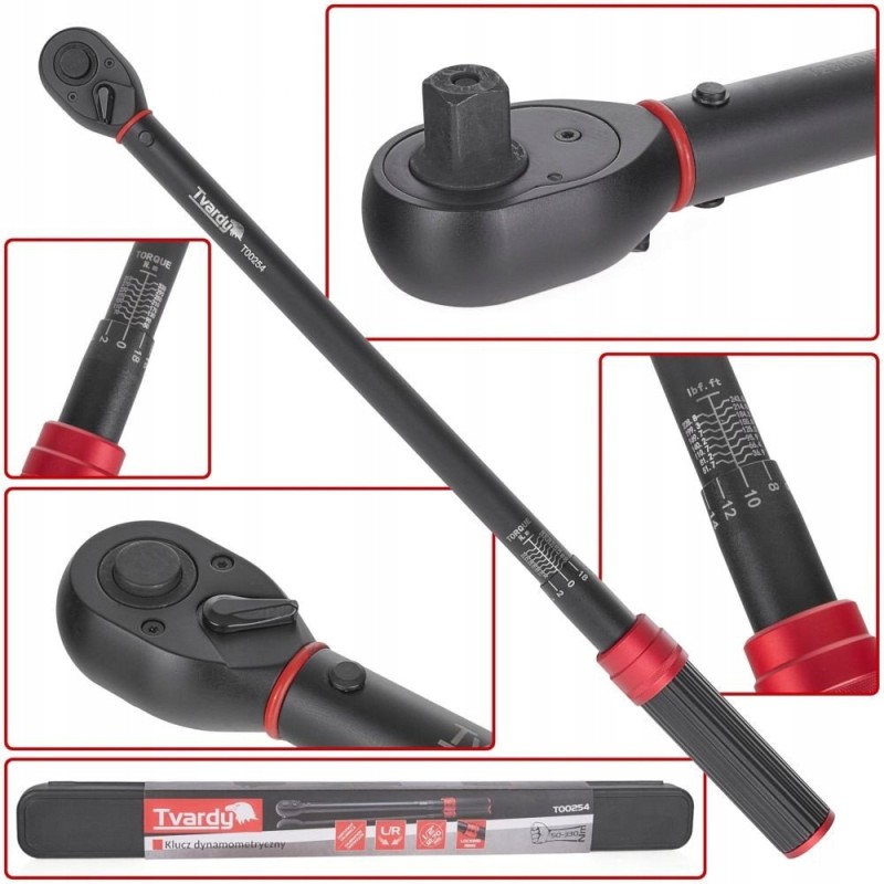 Klucz dynamometryczny Tvardy T00254 umożliwia dwukierunkowy pomiar momentu obrotowego, co zwiększa jego funkcjonalność i czyni go idealnym narzędziem do różnych zastosowań w warsztacie oraz w domu.