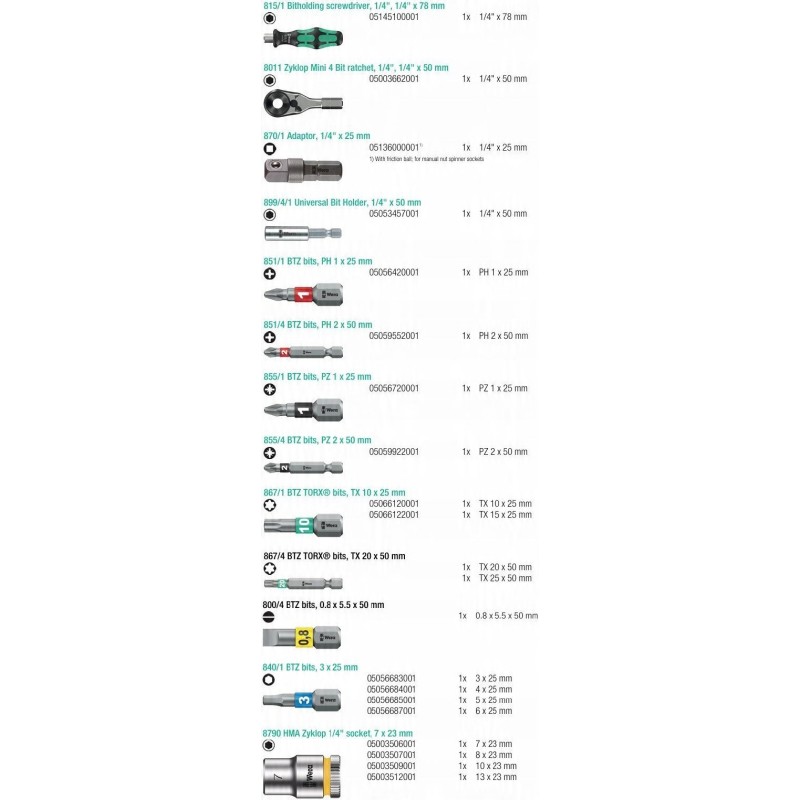 Specyfikacja techniczna Wera Tool-Check Modular 1 – 21 elementów w zestawie