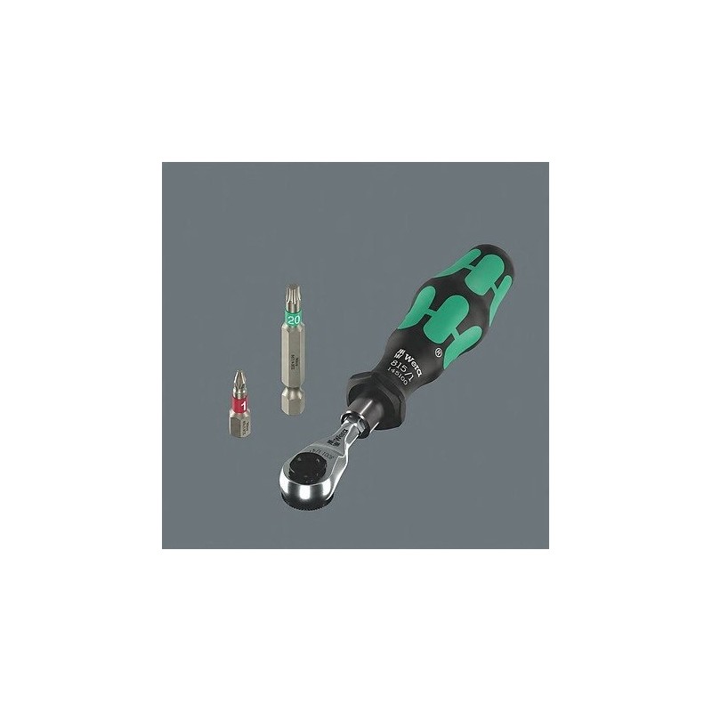 Grzechotka Zyklop Mini 8011 to kolejny element zestawu, który zapewnia wygodę i precyzję podczas pracy. Dzięki jej kompaktowym rozmiarom, idealnie sprawdzi się w trudno dostępnych miejscach, umożliwiając szybkie i łatwe wkręcanie oraz wykręcanie śrub.