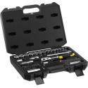 - 14 x 3/8" nasadki (6-kątne): 8 – 10 – 11 – 12 – 13 – 14 – 15 – 16 – 17 – 18 – 19 – 20 – 21 – 22 mm,