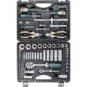 Ten kompletny zestaw narzędzi zawiera wszystkie niezbędne narzędzia do wykonywania różnorodnych prac mechanicznych, niezależnie od tego, czy pracujesz w domu, czy w profesjonalnym serwisie.