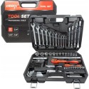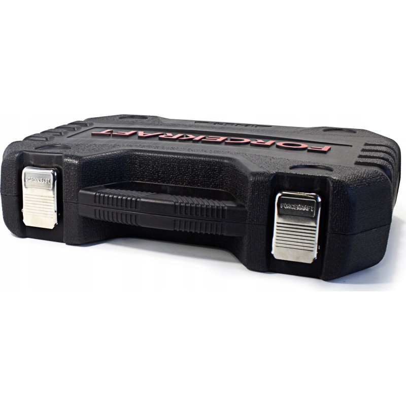 Wszystkie narzędzia znajdują się w bardzo wytrzymałej i wygodnej walizce ze sztucznego tworzywa, umożliwiającej łatwe przenoszenie i przechowywanie całego zestawu.