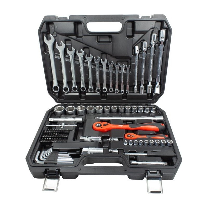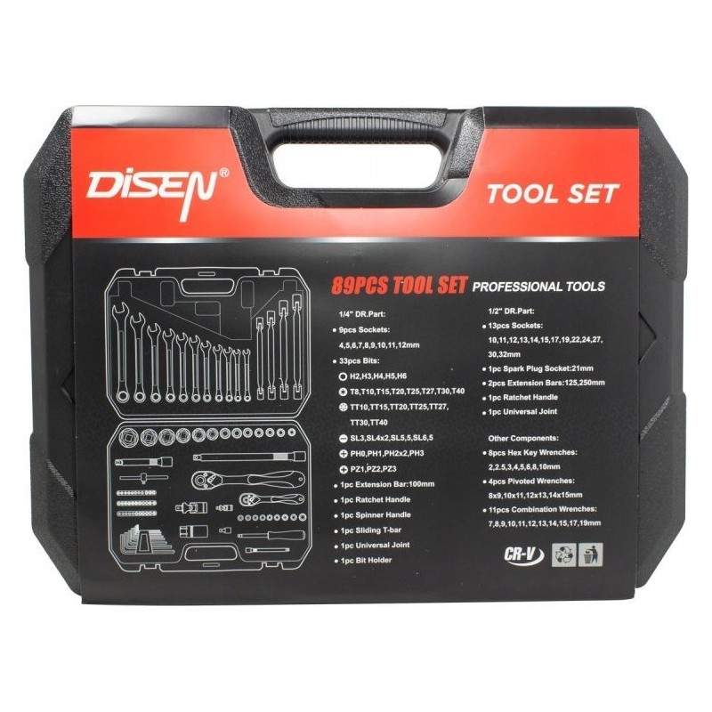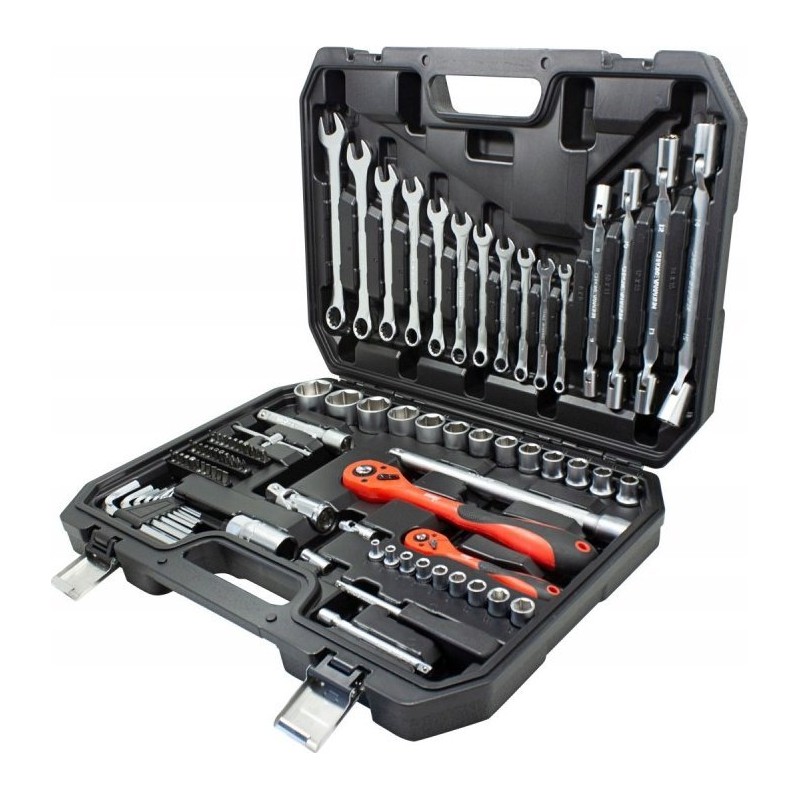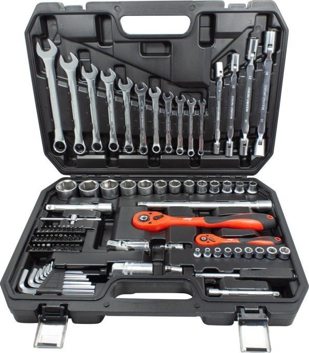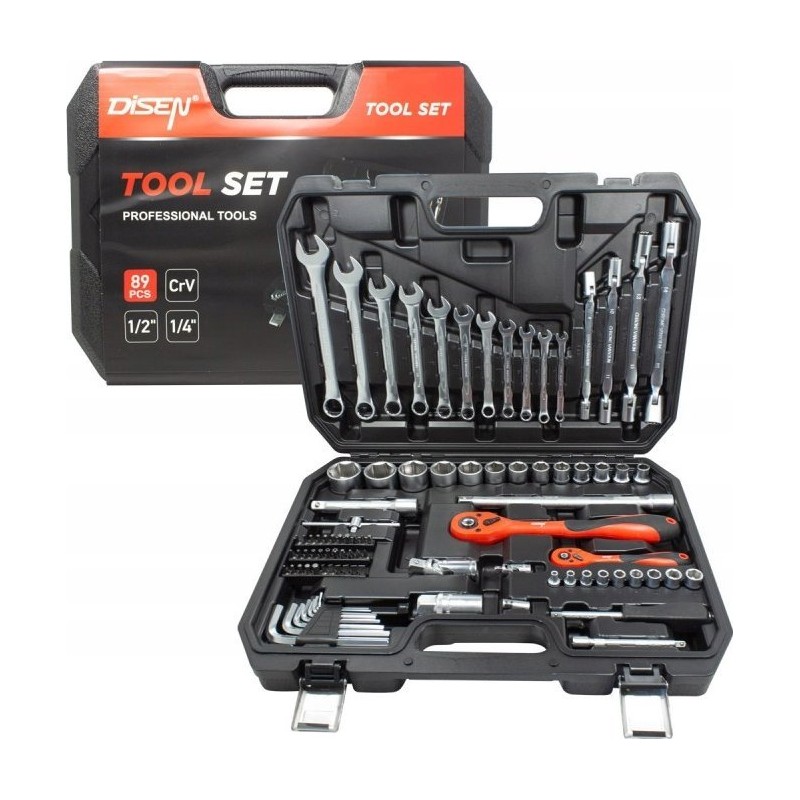 Zestaw zawiera 89 narzędzi, idealnych zarówno dla amatorów, jak i profesjonalistów. Wykonane są one ze stali chromowo-wanadowej (CRV-50 - stal narzędziowa) Dzięki temu narzędzia mogą być wykorzystywane w pracach wymagających dużych sił.
