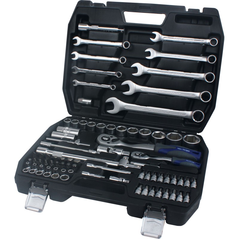 Zestaw kluczy nasadowych 1/4"+ 1/2" i płasko-oczkowych ADLER 82 elementy