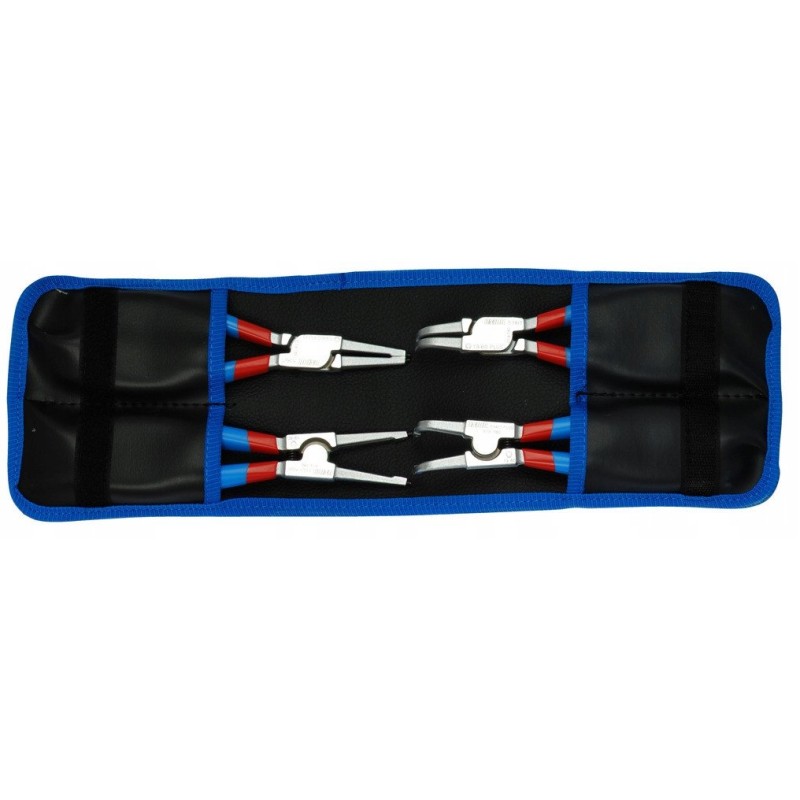 Zestaw składa się z czterech elementów, w tym zarówno zewnętrznych, jak i wewnętrznych szczypiec do pierścieni Segera, w wersjach prostych oraz kątowych. Taki dobór narzędzi sprawia, że zestaw jest niezwykle funkcjonalny i dostosowany do różnych potrzeb użytkowników.