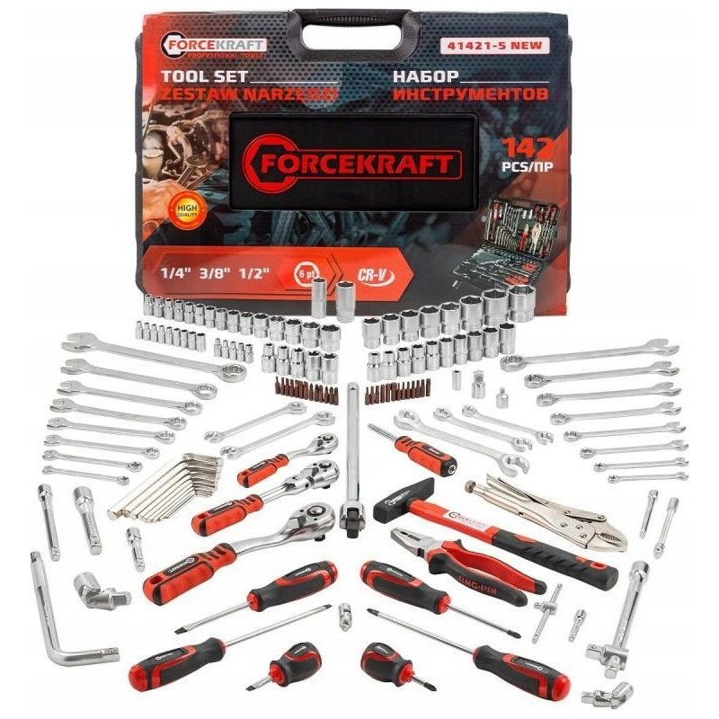 Zestaw narzędzi Forcekraft Zestaw narzędzi 142el. 1/4", 3/8", 1/2" (4-36mm) (6-kątnych)