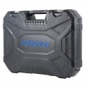 Całość zapakowana jest w solidną walizkę z tworzywa sztucznego, co ułatwia transport oraz przechowywanie. Walizka została zaprojektowana tak, aby każdy element miał swoje miejsce, co pozwala na szybki dostęp do narzędzi.
