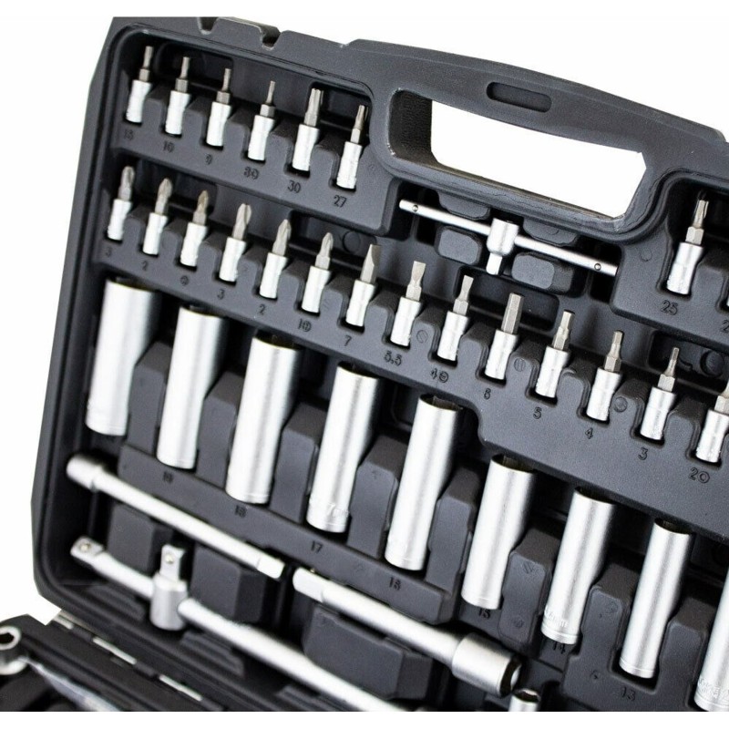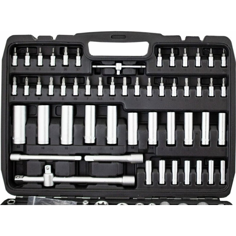 Ten 171-częściowy zestaw z grzechotką Walizką narzędziową to idealny zestaw dla ambitnych majsterkowiczów, poręczny i przejrzysty , bezpiecznie przechowywany w zamykanej walizce.Narzędzia są ze stali chromowo-wanadowej, co zapewnia zwiększoną wytrzymałość, a zawartość chromu poprawia ochronę przed korozją.