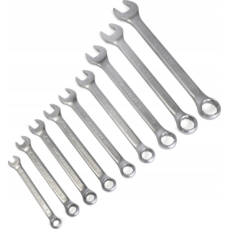 - Klucze płasko-oczkowe - 9 szt.: 8, 10, 11, 12, 13, 14, 17, 19, 22 mm