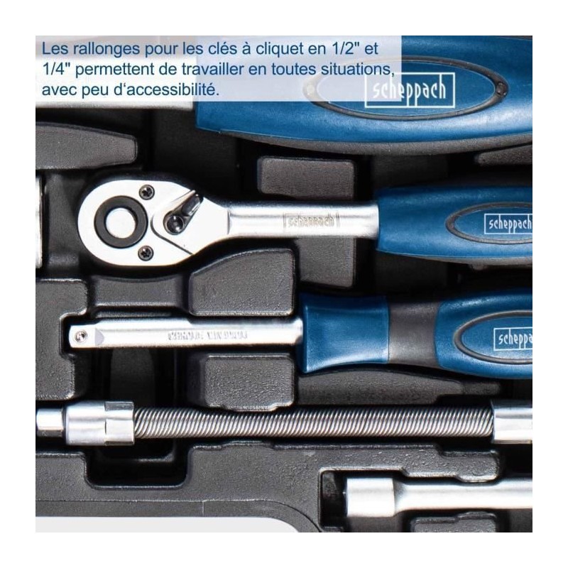 Zestaw narzędzi Scheppach Rankinių įrankių rinkinys TB94 lagaminas,1/4´´-1/2´´, 94 vnt., Scheppach