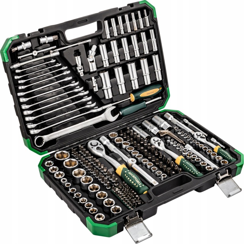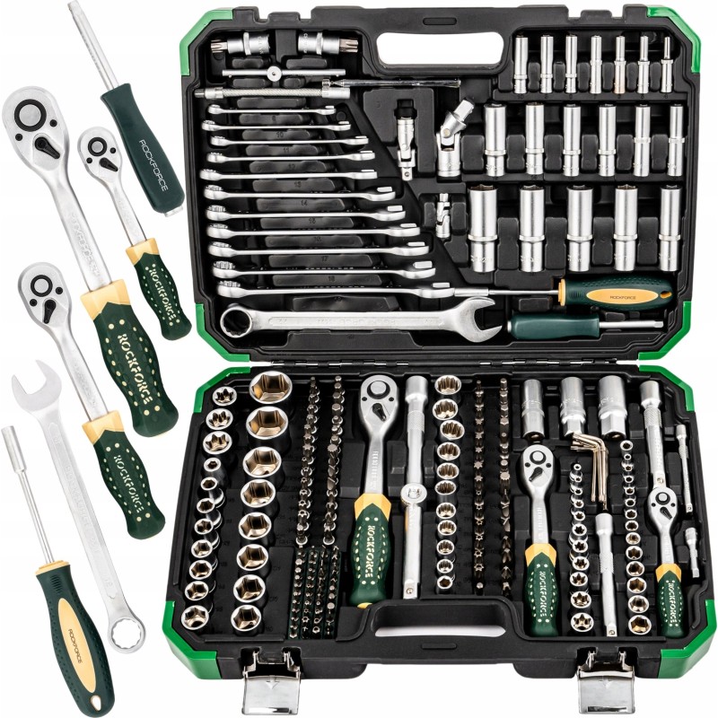 Praktyczny zestaw narzędziowy Rockforce to świetny wybór dla każdego majsterkowicza. Złożony z 216 elementów, w tym kluczy nasadowych, kluczy płaskich, bitów oraz grzechotek, ten zestaw oferuje wszechstronność i funkcjonalność, które są niezbędne w każdym domu, garażu czy warsztacie. Dzięki różnorodnym rozmiarom nasadek, narzędzia te doskonale sprawdzą się w wielu zastosowaniach.