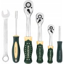 Narzędzia w zestawie zostały wykonane z wysokiej jakości stali CrV, co zapewnia ich długowieczność oraz odporność na ścieranie. Możesz być pewien, że będą one służyły przez długi czas, nawet przy intensywnym użytkowaniu.