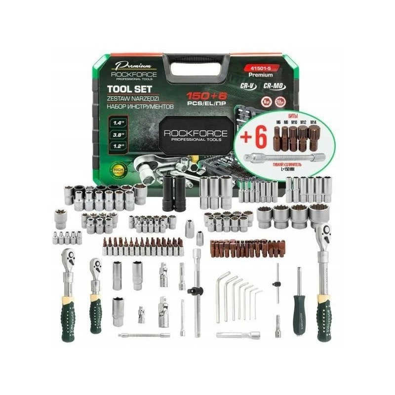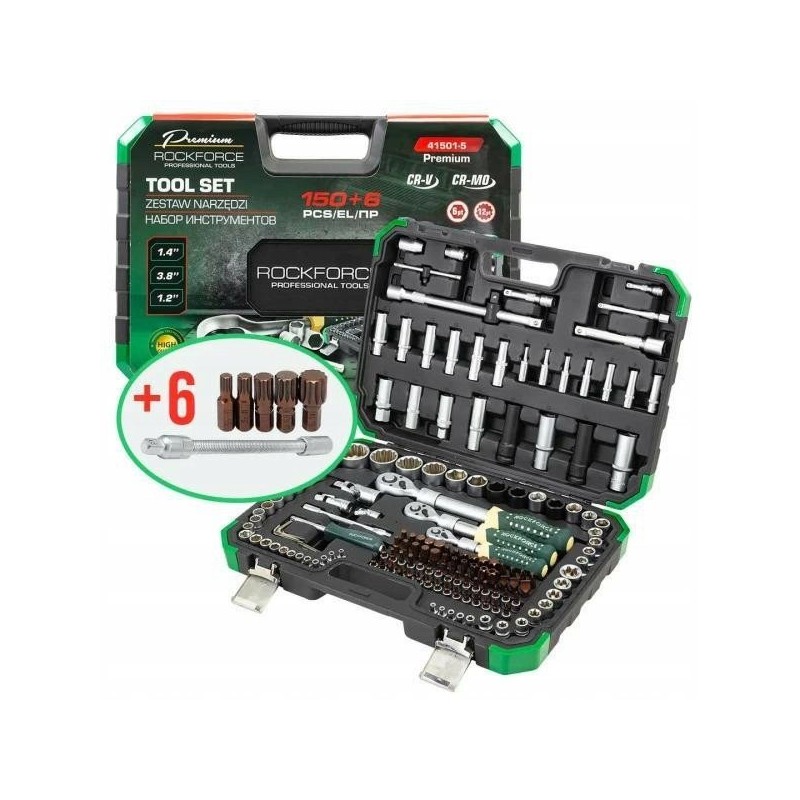 Zestaw narzędzi 150 + 6 przedm. 1/4", 3/8", 1/2" Rockforce Premium – Niezbędnik każdego majsterkowicza