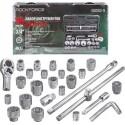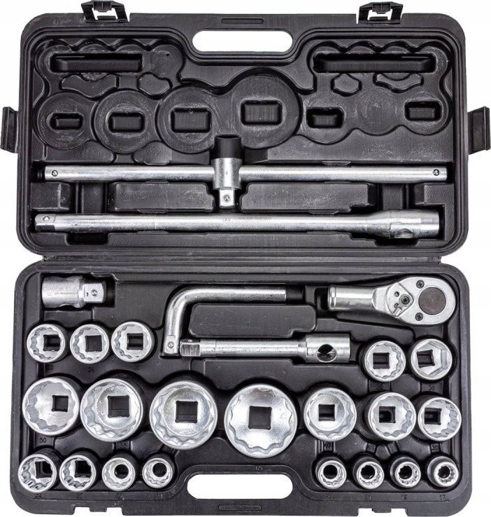 - Nasadki 12-kątne 3/4" - 17 szt.: 17 mm, 19 mm, 21 mm, 22 mm, 24 mm, 27 mm, 30 mm, 32 mm, 33 mm, 34 mm, 35 mm, 36 mm,(36 mm - 12-kąt), 38 mm, 41 mm, 46 mm, 50 mm