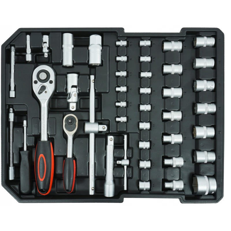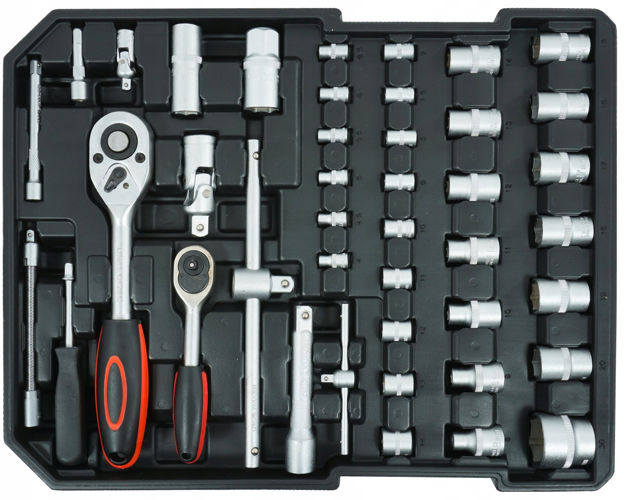 Narzędzia w zestawie zostały wykonane z wysokiej jakości stali stopowej chromowo-wanadowej, co zapewnia ich trwałość i niezawodność. Nowoczesne technologie obróbki powierzchni nie tylko poprawiają estetykę, ale również zwiększają komfort użytkowania dzięki gumowanym strefom antypoślizgowym.