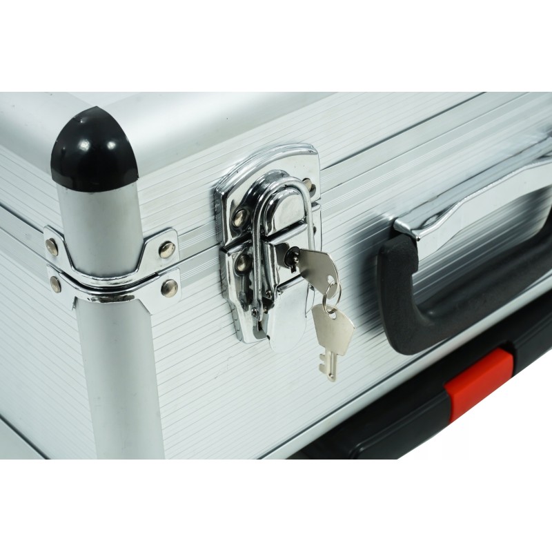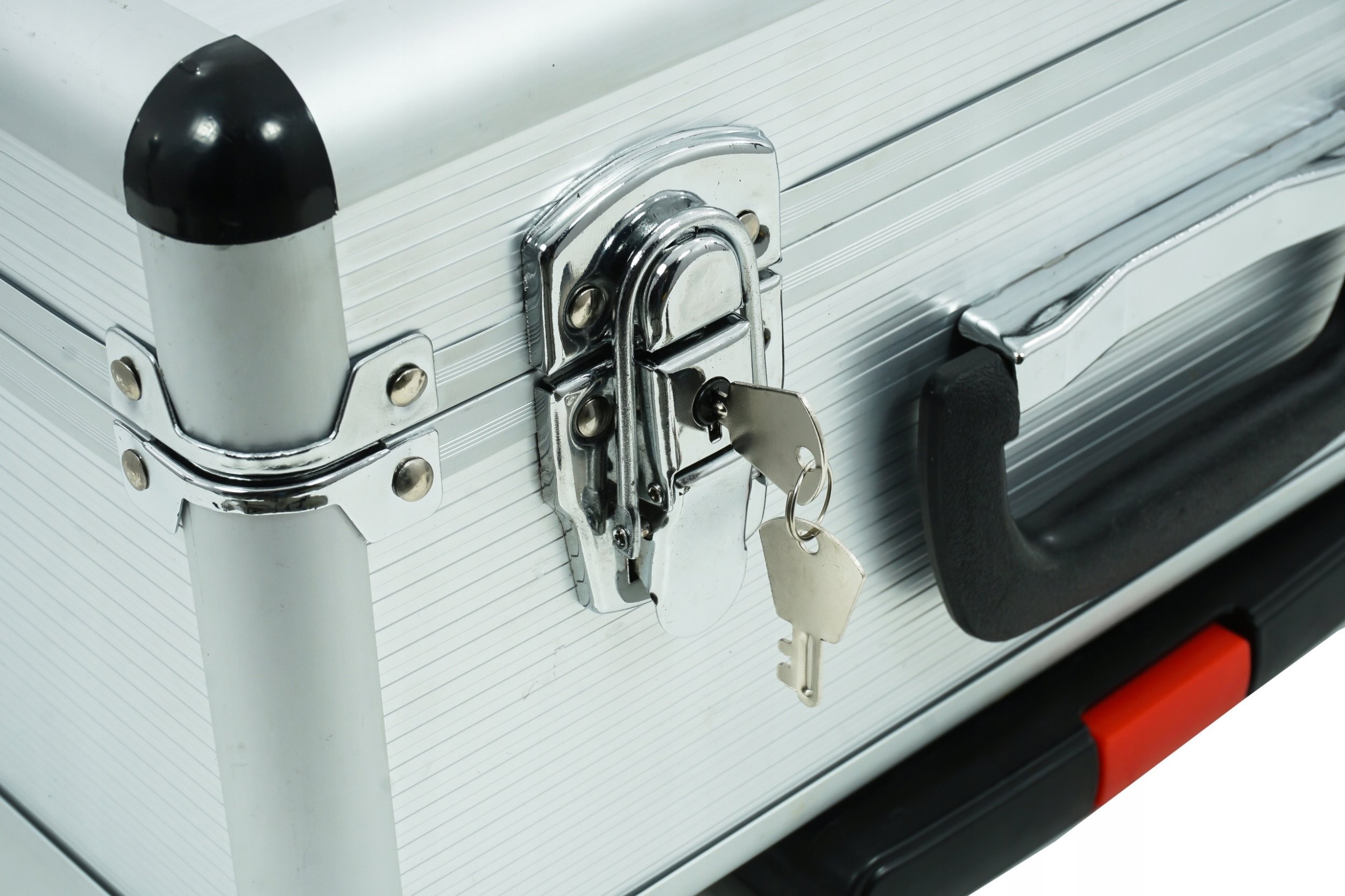 Walizka zestawu została wyposażona w zamknięcia na kluczyk, co zapewnia bezpieczeństwo przed dostępem dzieci oraz przypadkowym rozsypaniem elementów. Dzięki temu możesz mieć pewność, że Twoje narzędzia są zawsze w bezpiecznym miejscu.