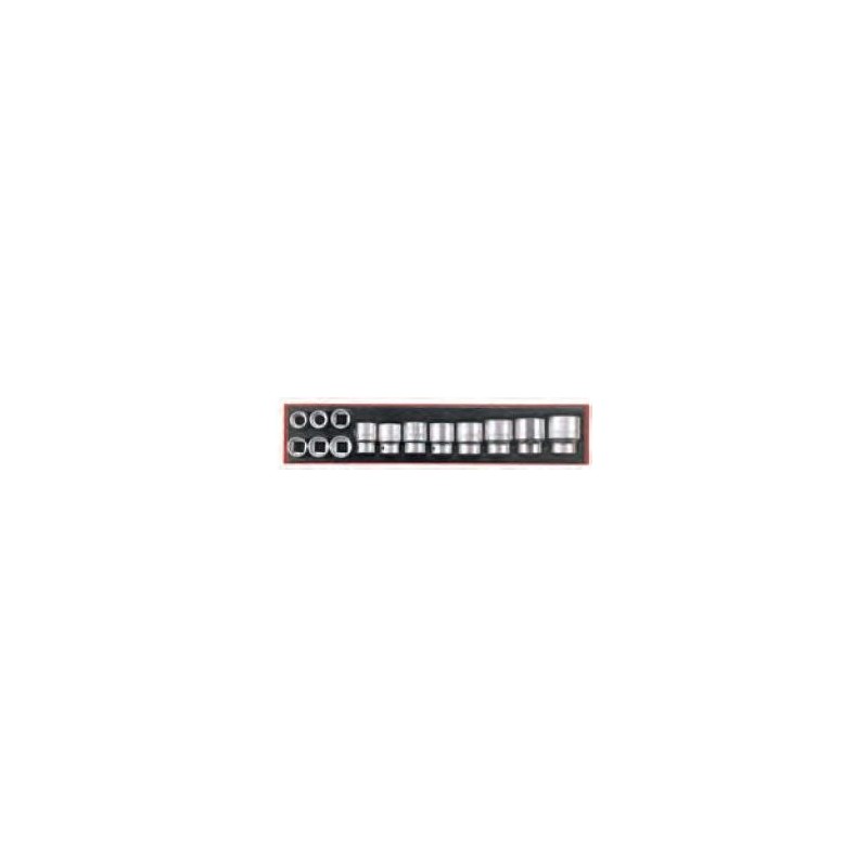 Ze stali chromowo-wanadowej. Zestaw zawiera 14 nasadek o rozmiarach calowych z sześciokątnym otworem chwytowym.Dostarczany w pojemniku pasującym do skrzynek i wózków narzędziowych Teng Tools