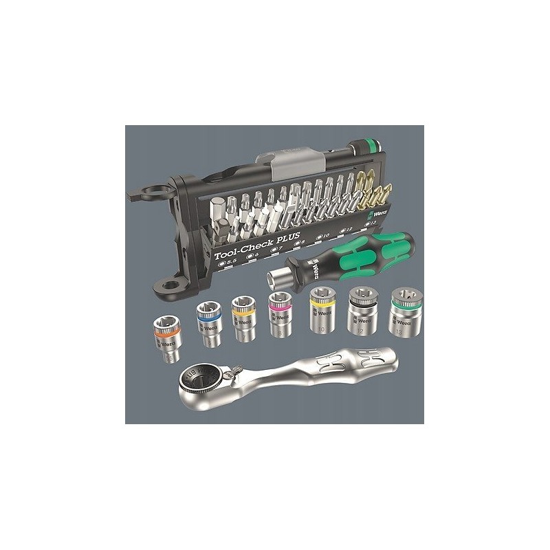 Tool-Check PLUS: 39-elementowy zestaw narzędzi, który zawiera grzechotkę, bity, klucze nasadowe i uchwyt do bitów