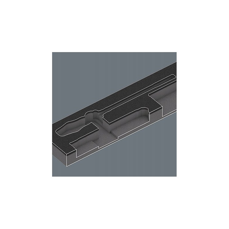 Wytrzymała, dwukolorowa wkładka piankowa, która umożliwia szybkie zlokalizowanie brakujących elementów i pasuje do wózka narzędziowego Tool Rebel z zestawami Wera Kraftform Kompakt 60, Tool-Check PLUS oraz uchwytem do bitów 393 S extra slim z elastycznym trzpieniem.