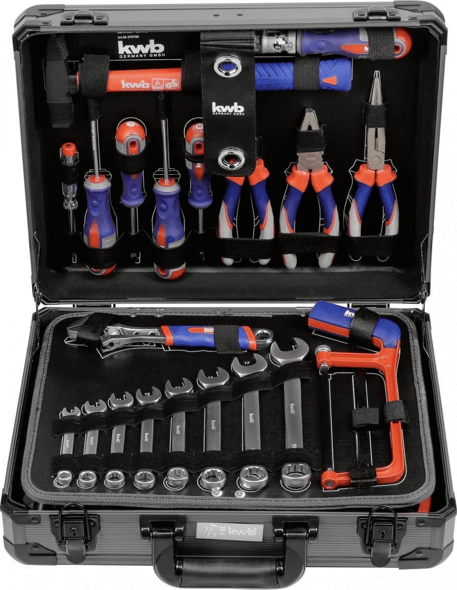 Zestaw narzędzi 129-częściowy. Walizka narzędziowa oferuje szeroką gamę narzędzi. Idealny jako podstawowe wyposażenie warsztatu w wytrzymałej aluminiowej walizce do użytku mobilnego.