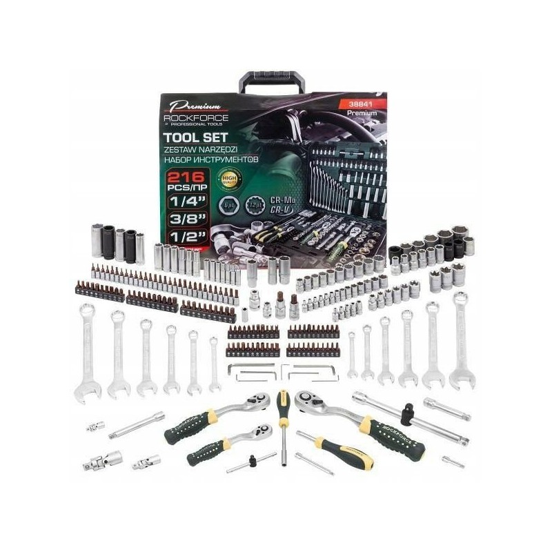 Zestaw narzędzi 216el. 1/4" 3/8" 1/2" Premium Cr-Mo Cr-V (4-32mm) – Niezbędnik każdego majsterkowicza