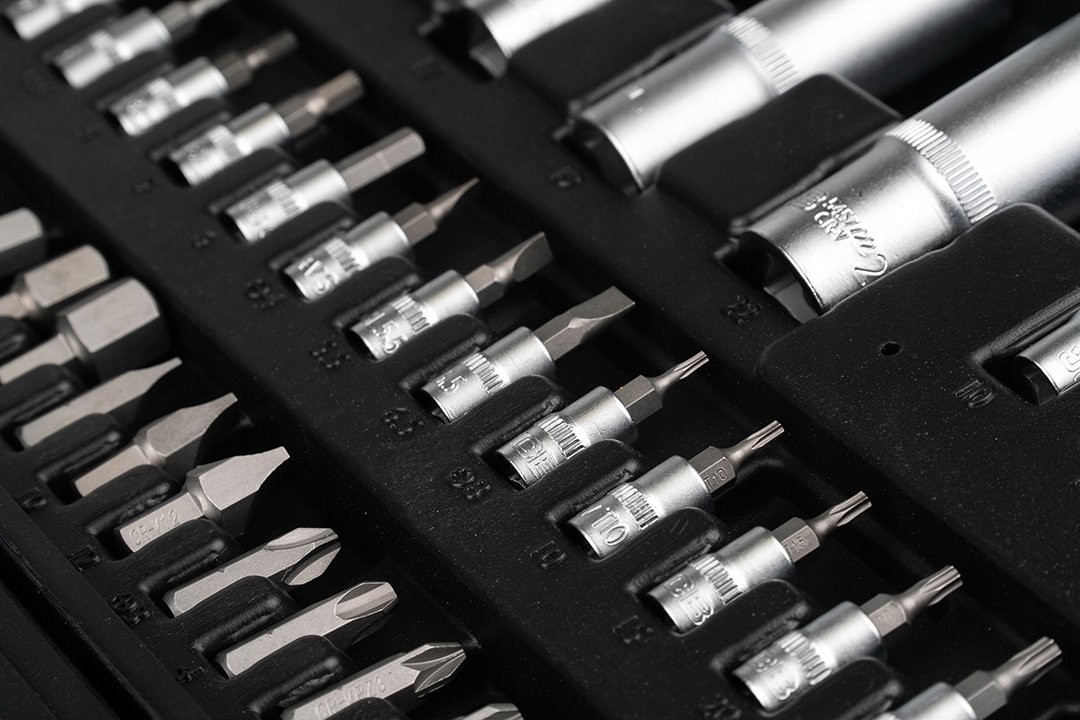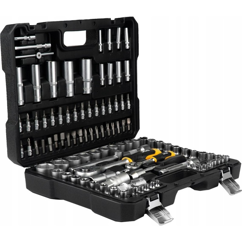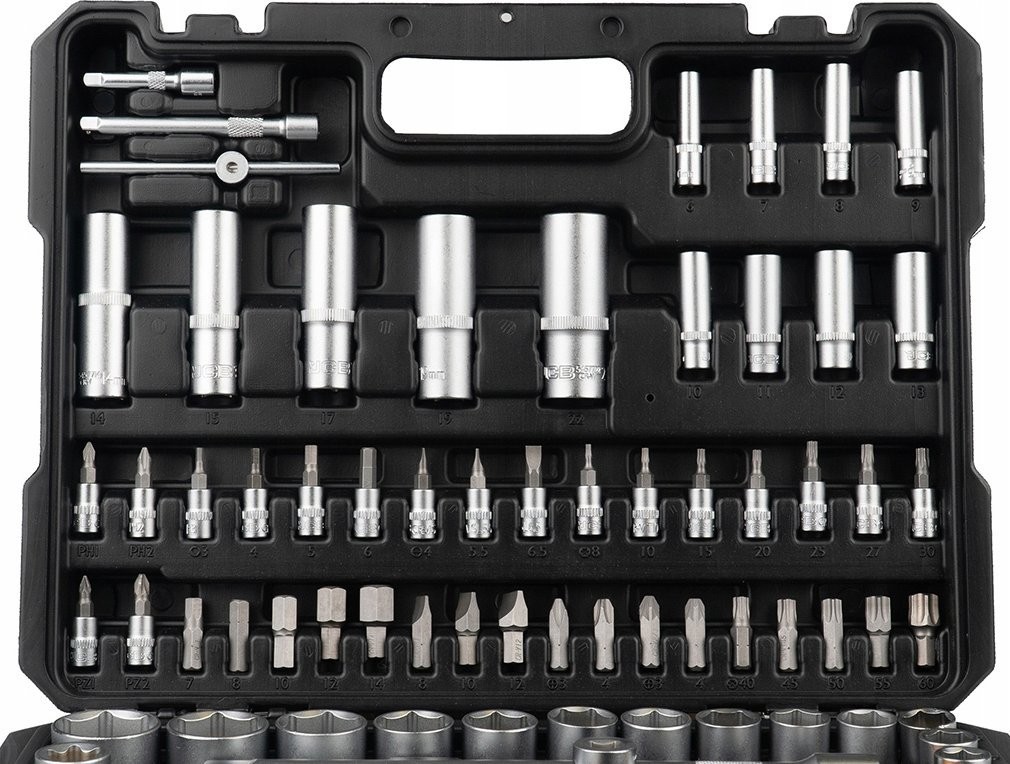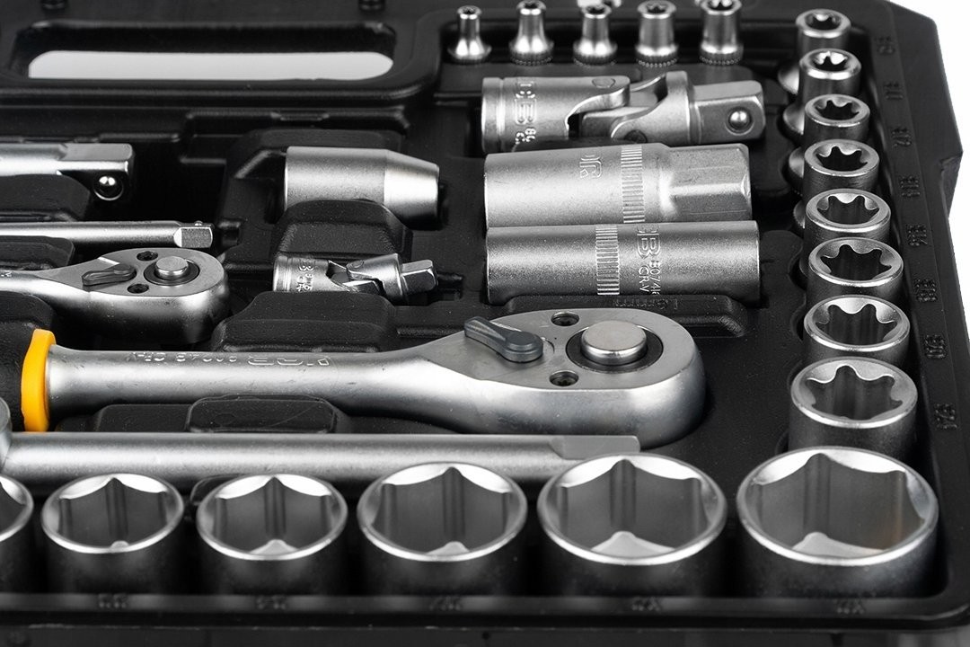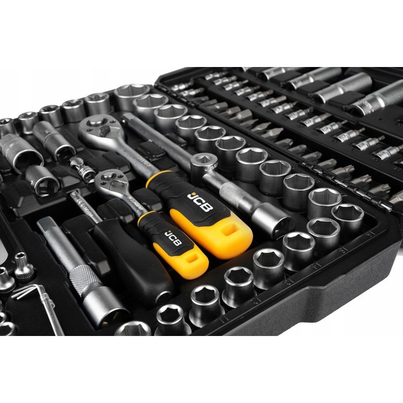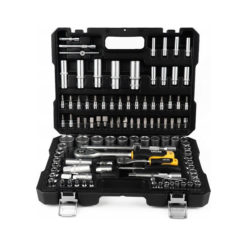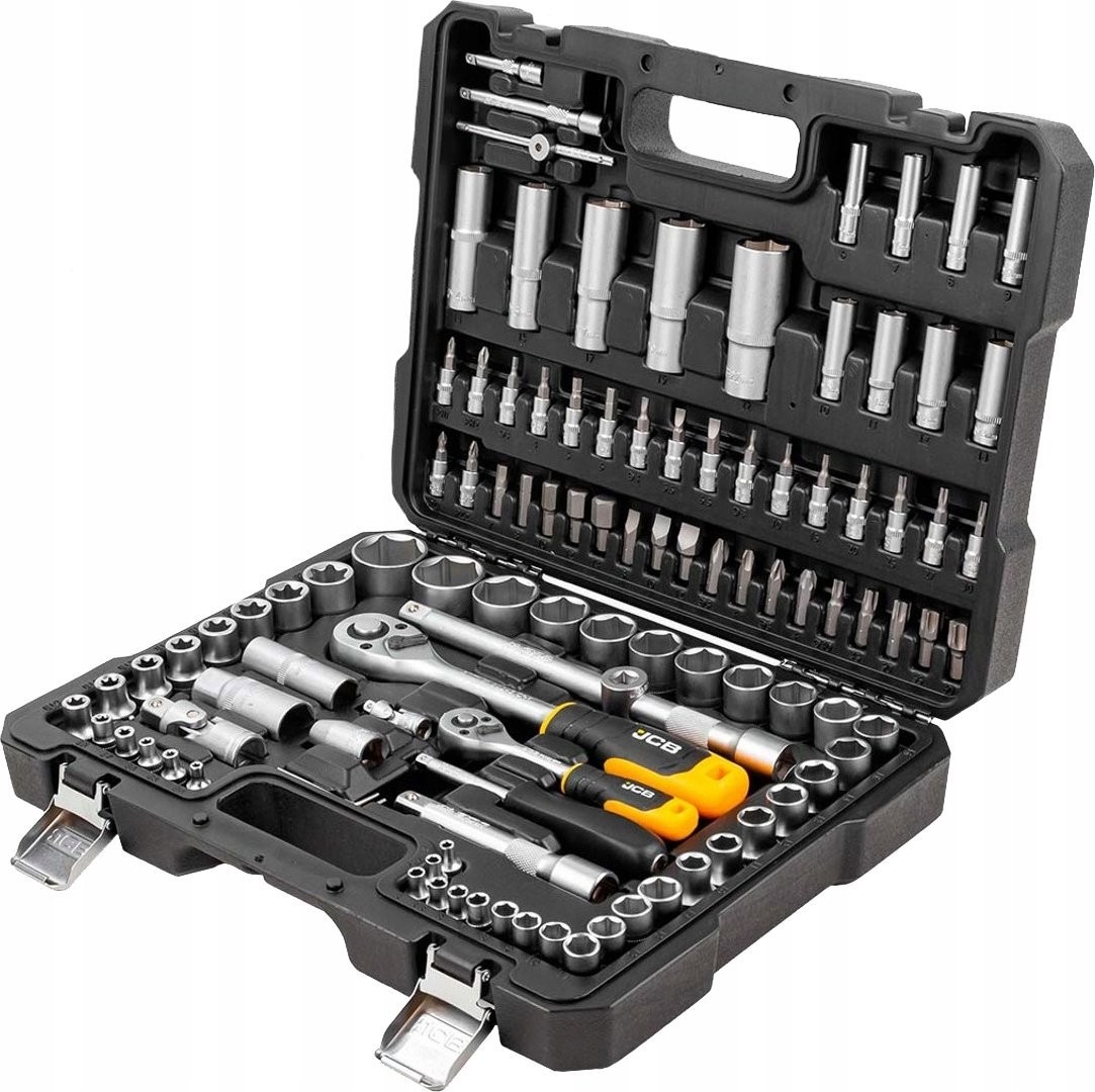Zestaw 56915 JCB zawiera 108 precyzyjnie wykonanych narzędzi, które poradzą sobie z szerokim zakresem prac remontowych, montażowych i serwisowych. Antypoślizgowe rękojeści zapewniają że, grzechotki nie wypadają z rąk podczas pracy.