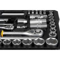 - 17x nasadka 1/2" - 10, 11, 12, 13, 14, 15, 16, 17, 18, 19, 20, 21, 22, 24, 27, 30, 32 mm,