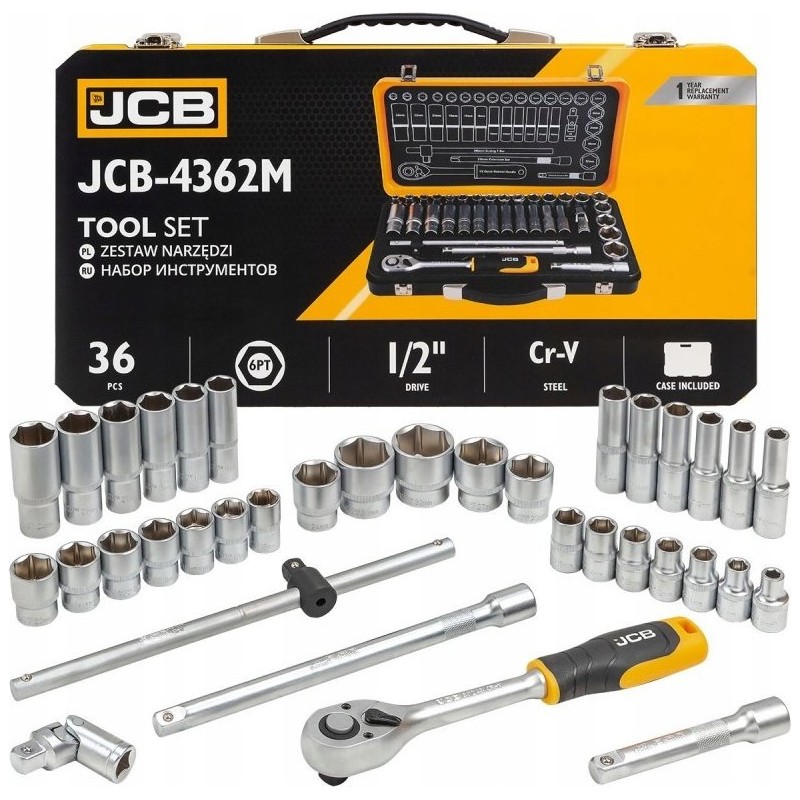 Zestaw narzędzi JCB Zestaw narzędzi 1/2" 36el. (8-32mm) (6-kątnych)