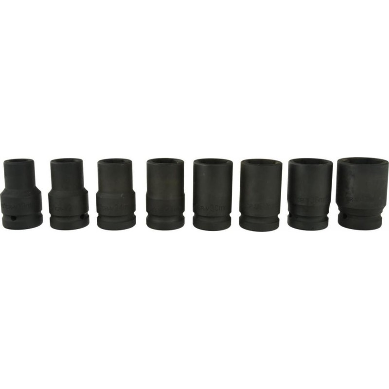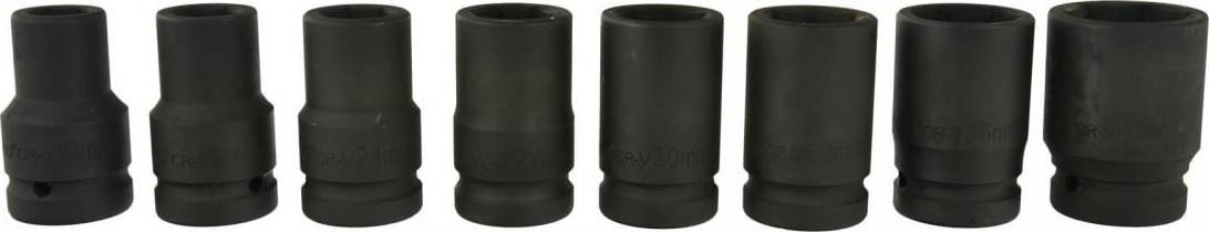 Nasadki udarowe wykonane ze stali CRV 1’’ Gniazdo nasadki jest wykonane ze dużą dokładnością, zgodnie z wyższymi klasami dokładności określonymi w normie. Nasadki współpracują z urządzeniami pneumatycznymi, oraz grzechotkami które pracują w ciężkich warunkach pod zmiennymi obciążeniami . Całość zapakowana w walizkę W ZESTAWIE NASADKI : 19mm 21mm 24mm 27mm 30mm 32mm 36mm 41mm