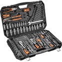 - Zawiera aż 233 elementy w rozmiarach 1/2", 3/8" i 1/4" wykonane z wysokiej jakości stali chromowo wanadowej.