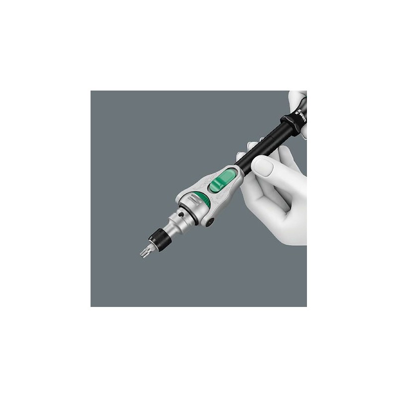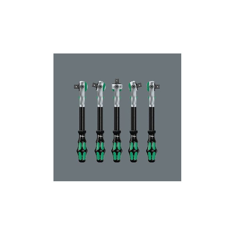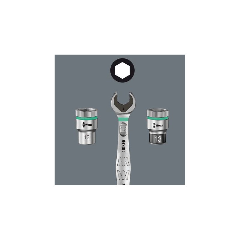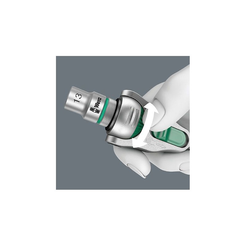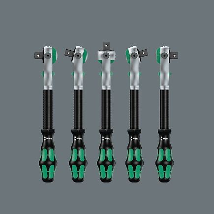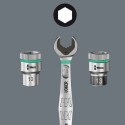 43-częściowy zestaw Zyklop w solidnej metalowej kasecie: 1 grzechotka Zyklop z zabierakiem 1/4", 1 grzechotka Zyklop z zabierakiem 1/2". Drobna podziałka z 72 zębami zapewniająca niewielki kąt pracy wynoszący 5°. Grzechotka posiada wychylną główkę, którą można zablokować w każdej pozycji dzięki umieszczonemu z obu stron przełącznikowi blokady. Gwarantuje to bezproblemową pracę nawet w bardzo wąskich lub trudno dostępnych miejscach, zapewniając wystarczającą przestrzeń dla ruchu ręki. Blokowanie ustawień główki w pozycji 0° oraz 15° i 90° w prawo i lewo gwarantuje bezpieczną pracę bez ryzyka „wyślizgiwania się” główki grzechotki. W pozycji 0° i przy zastosowaniu adapteru i końcówki lub grotu może być stosowana jak standardowy wkrętak. Konstrukcja wykorzystująca masę własną narzędzia pozwala na znaczne przyspieszenie montażu. Osiowo-symetryczna rękojeść Kraftform wraz z obrotową tulejką umożliwia szybkie pokręcanie. Kształt rękojeści Kraftform doskonale dopasowuje się do kształtu dłoni, chroniąc ją przed powstawaniem pęcherzy i odcisków. Twarde elementy materiału rękojeści pozwalają na szybkie pokręcanie bez ryzyka „przyklejania się” dłoni do rękojeści. Miękkie, antypoślizgowe strefy umożliwiają bezstratne przenoszenie dużych sił. Do kluczy nasadowych i adapterów z gniazdem czworokątnym 1/4”, z zatrzaskiem kulkowym. 21 kluczy nasadowych Zyklop, 2 przedłużacze Zyklop z tuleją obrotową, 1 rękojeść Kraftform z uchwytem do grotów i końcówek i uchwytem szybkomocującym; 16 końcówek. Z system wyszukiwania narzędzi Wera „Take it easy“: system oznaczenia kolorystycznego kluczy według rozmiaru.