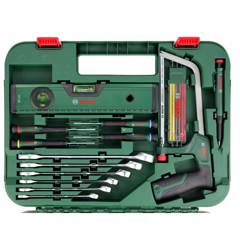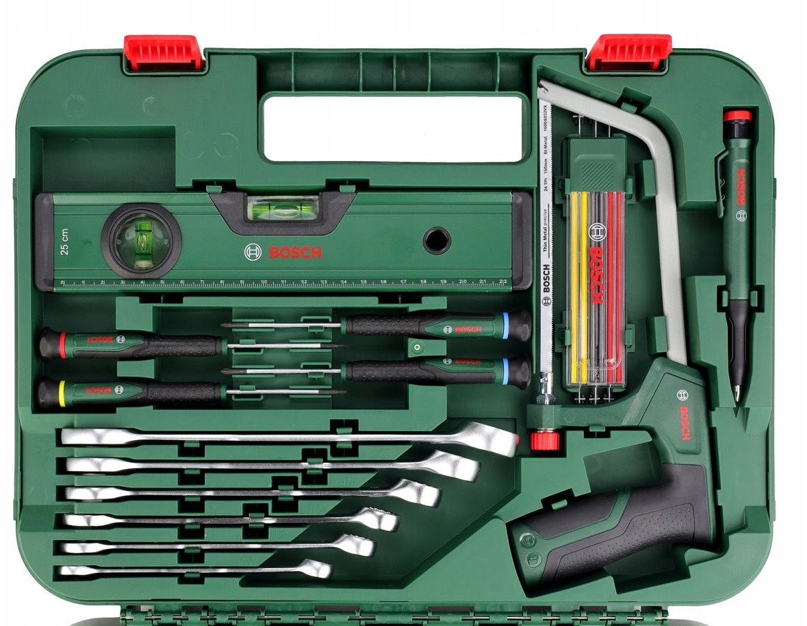 Zestaw narzędzi ręcznych Bosch Advanced to znakomity wybór dla każdego, kto planuje prace remontowe lub budowlane w swoim domu. Dzięki różnorodności narzędzi, każdy projekt stanie się prostszy i bardziej przyjemny.
