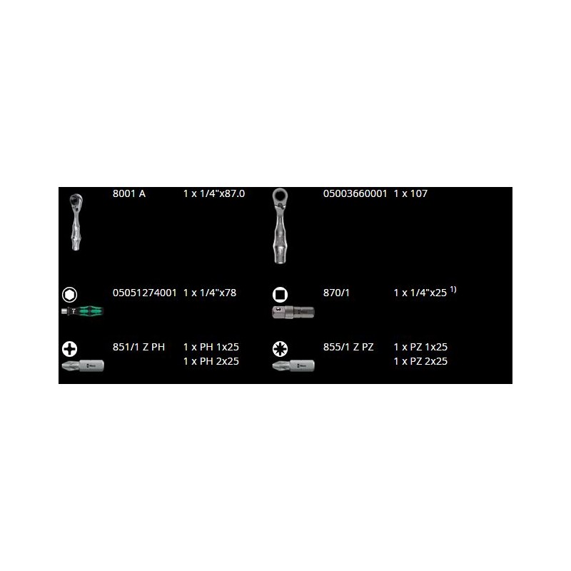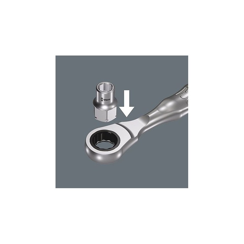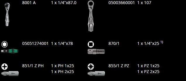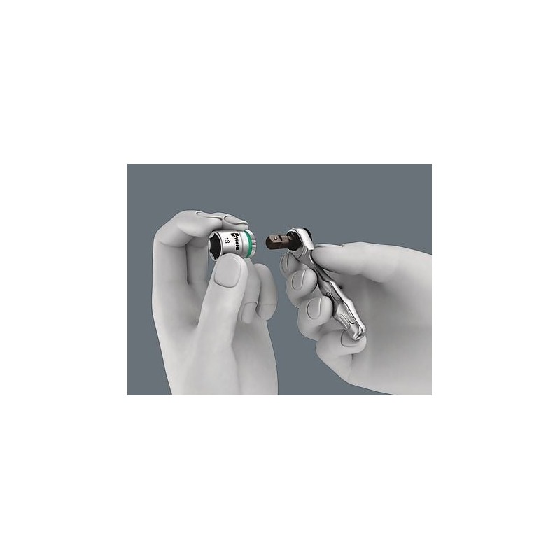 - Klucze z grzechotką Zyklop Mini 1 lub Zyklop Mini 2 mogą być z powodzeniem stosowane w wąskich przestrzeniach montażowych, gdzie brak jest wystarczającej ilości miejsca na użycie innych narzędzi. 1 klucz z grzechotką do grotów i końcówek wkrętakowych Zyklop Mini 1 Wera do sześciokątnych grotów 1/4" wg DIN ISO 1173-C 6,3 oraz końcówek E 6,3, a także grotów i końcówek z serii Wera 1 i 4; użycie adaptera 870/1 pozwala na zastosowanie kluczy nasadowych 1/4"; 1 klucz z grzechotką Zyklop Mini 2 Wera do bezpośredniego mocowania specjalnych kluczy nasadowych Wera 8790 FA.
