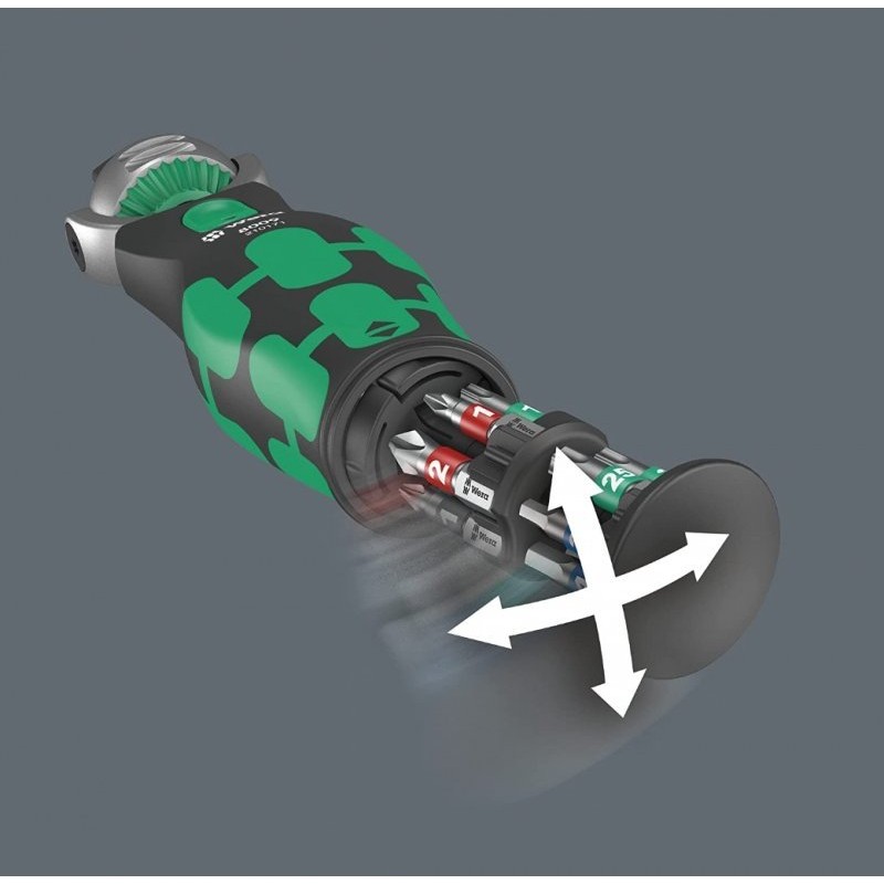 Grzechotka w zestawie została wyposażona w nowoczesny magazyn na bity, co zapewnia szybki dostęp do narzędzi podczas pracy. Dzięki temu nie musisz tracić czasu na poszukiwanie odpowiednich bitów – wszystko, co potrzebne, masz zawsze pod ręką.