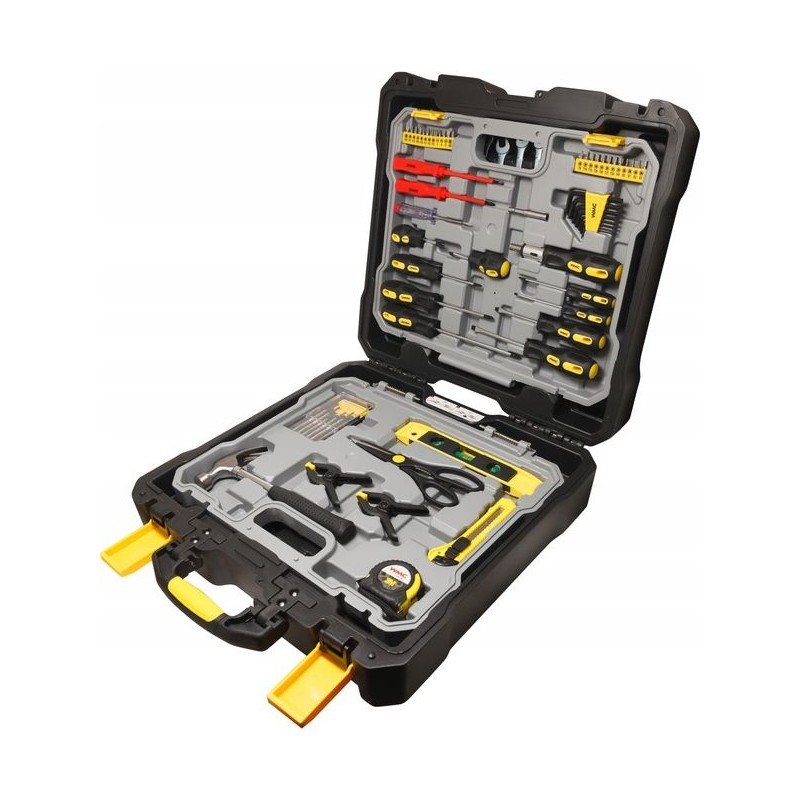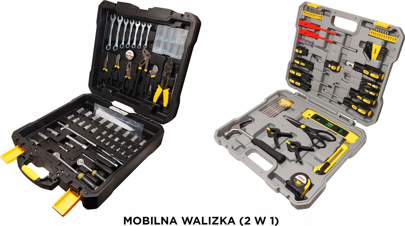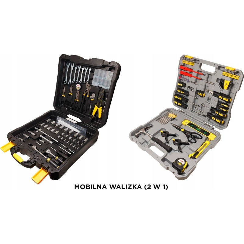 Zestaw narzędzi w walizce (Mobilna walizka 2 w 1) . Wbudowane kółeczka ułatwiające przesuwanie walizki oraz teleskopowa rączka. Doskonale wykonana walizka narzędziowa. Cały zestaw wykonany z zachowaniem solidnej jakości. Walizka z kółeczkami i rączką wyciąganą teleskopowo do przewożenia zestawu (jak walizka podróżna).