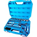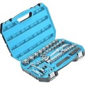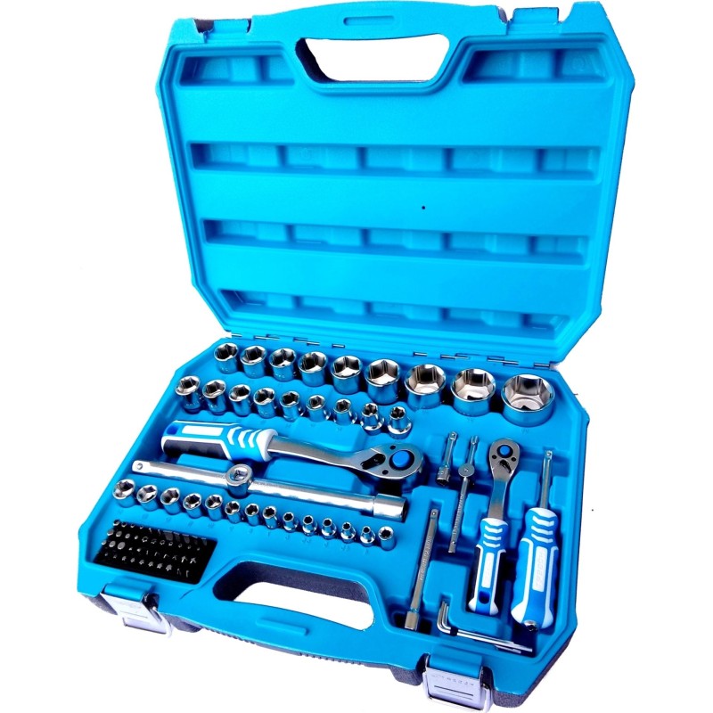 Zestaw kluczy nasadowych 1/4", 1/2". Niezastąpiony w każdym warsztacie lub garażu. Podstawowy zestaw najpotrzebniejszych nasadek, przedłużek oraz końcówek wkrętakowych, to wszystko sprawia, że jest to zestaw o bardzo szerokim zastosowaniu. Jeżeli znudziło Ci się kupowanie narzędzi, które szybko się zużywają i chciałbyś kupić solidną rzecz za całkiem rozsądne pieniądze, to sprawdź zestaw kluczy Hgert Technik. Wszystkie nasadki, końcówki i akcesoria wykonane zostały z wysokogatunkowej stali stopowej chromowo-wanadowej i są odporne na odkształcenia. Odkuwane matrycowo. Cały mechanizm zapadkowy grzechotki (72 zęby) wykonany ze stali stopowej chromowo-molibdenowej zwiększa trwałość mechanizmu oraz precyzję pracy. Komplet zapakowany został w dwukolorową walizkę z metalową klamrą i zawiasami.Zestaw zawiera: