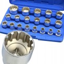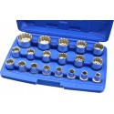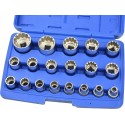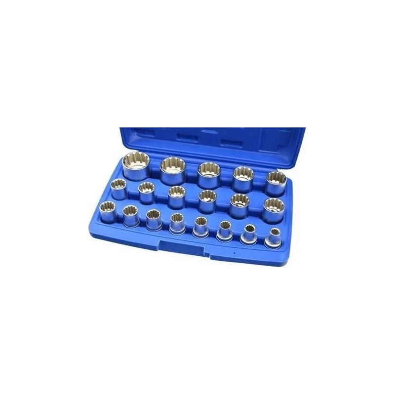 Zestaw wyjątkowych nasadek 12-kątnych o profilu Gear Lock. Nasadki służą do odkręcania różnych rodzajów śrub: sześciokątnych, dwunastokątnych, śrub z profilem Torx-E oraz śrub calowych. Nasadki są wykonane z trwałej stali stopowej chromowo-wanadowej.