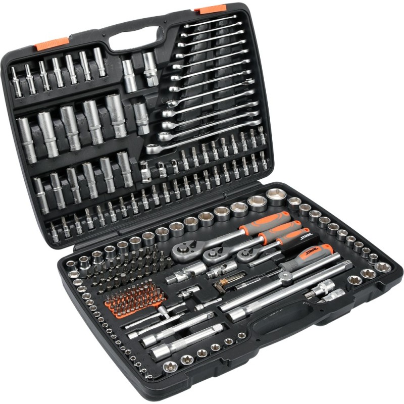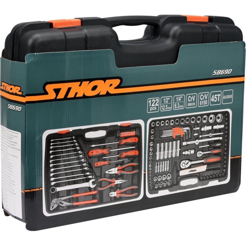 - Zestaw narzędziowy STHOR składa się z 216 elementów umieszczonych w wygodnej walizce z tworzywa sztucznego.