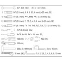 - Wszystkie elementy dostarczane są w wytrzymałym, praktycznym etui z oddzielnym miejscem na każde narzędzie. Etui posiada zamki i uchwyty. Po złożeniu przyjmuje kształt torby ułatwiającej przechowanie podstawowych narzędzi w jednym miejscu oraz przenoszenia ich do miejsca pracy