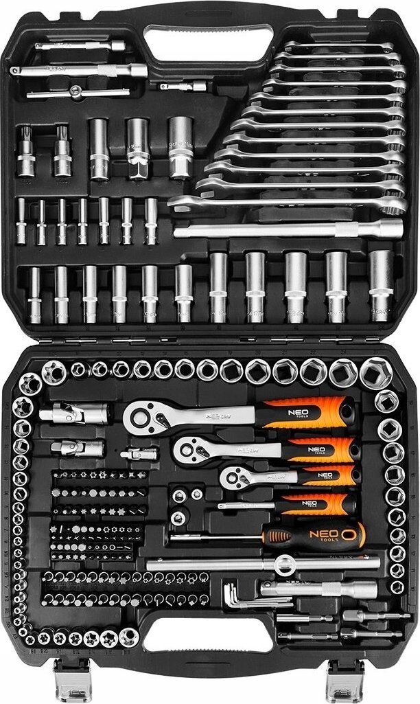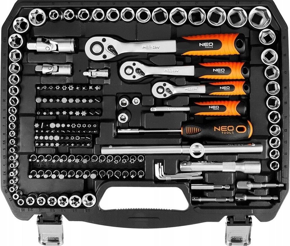 Zestaw kluczy nasadowych 1/2", 3/8", 1/4" 10-220 marki Neo Tools to doskonały wybór dla profesjonalistów i entuzjastów majsterkowania, którzy cenią sobie wysoką jakość i funkcjonalność narzędzi.
