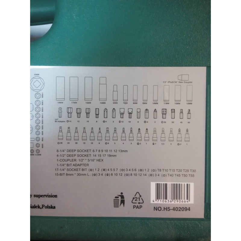 Zesaw kluczy nasadowych 94szt. CrV H4056