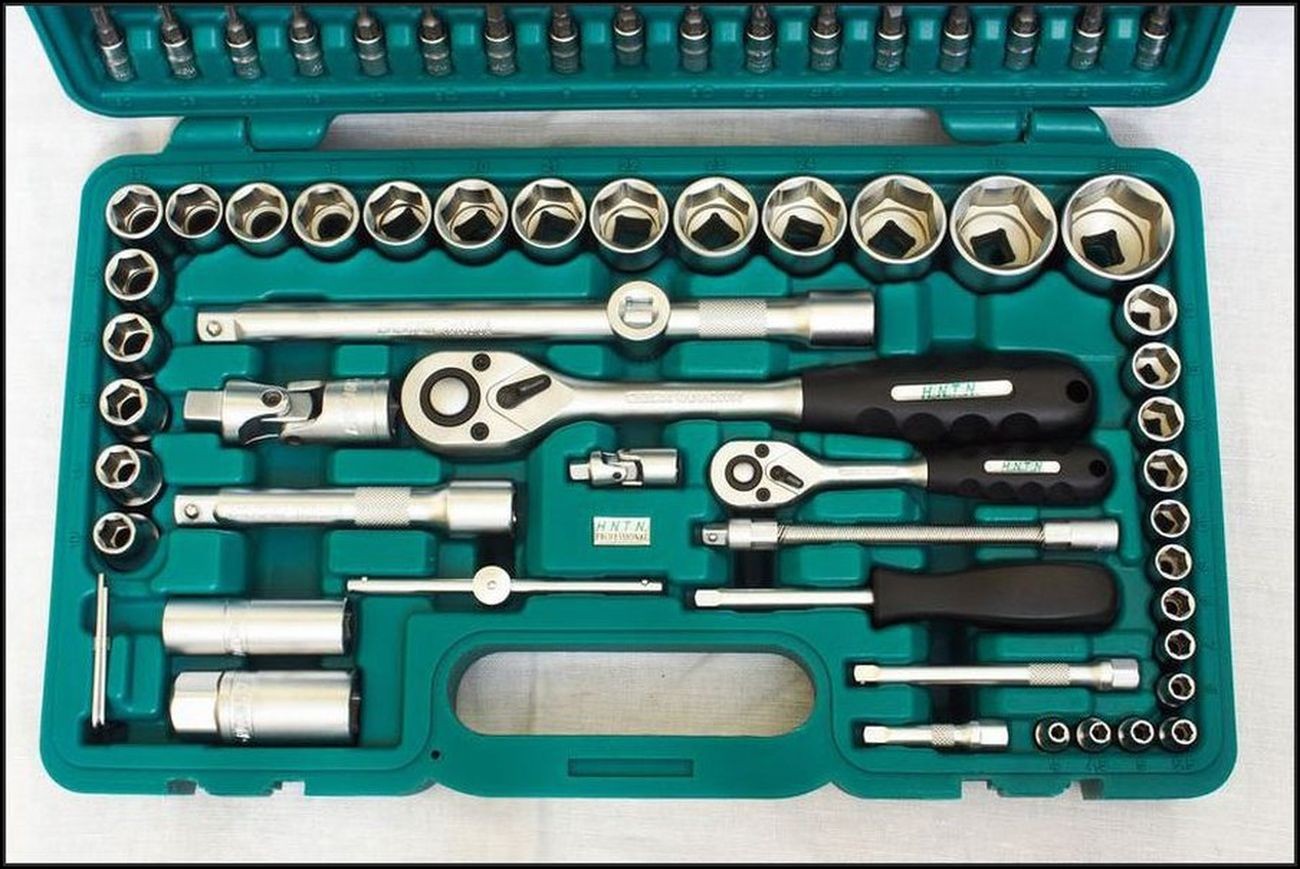 - Klucze nasadowe 1/2" - 18 sztuk: 10, 11, 12, 13, 14, 15, 16, 17, 18, 19, 20, 21, 22, 23, 24, 27, 30, 32 mm