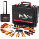 W zestawie znajdują się izolowane narzędzia, które przeszły testy zgodne z normą IEC 60900, co gwarantuje bezpieczeństwo podczas pracy z instalacjami elektrycznymi. Dodatkowe zabezpieczenia chronią palce przed przypadkowym zamknięciem pokrywy walizki.