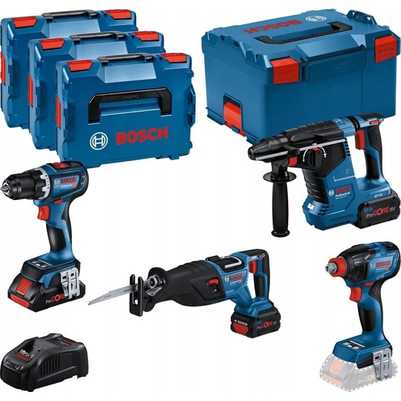 Bosch Professional Zestaw narzędzi GSR 18V-90C + GDX 18V-210C + GBH 18V-24C + GSA 18V-28, w L-BOXX